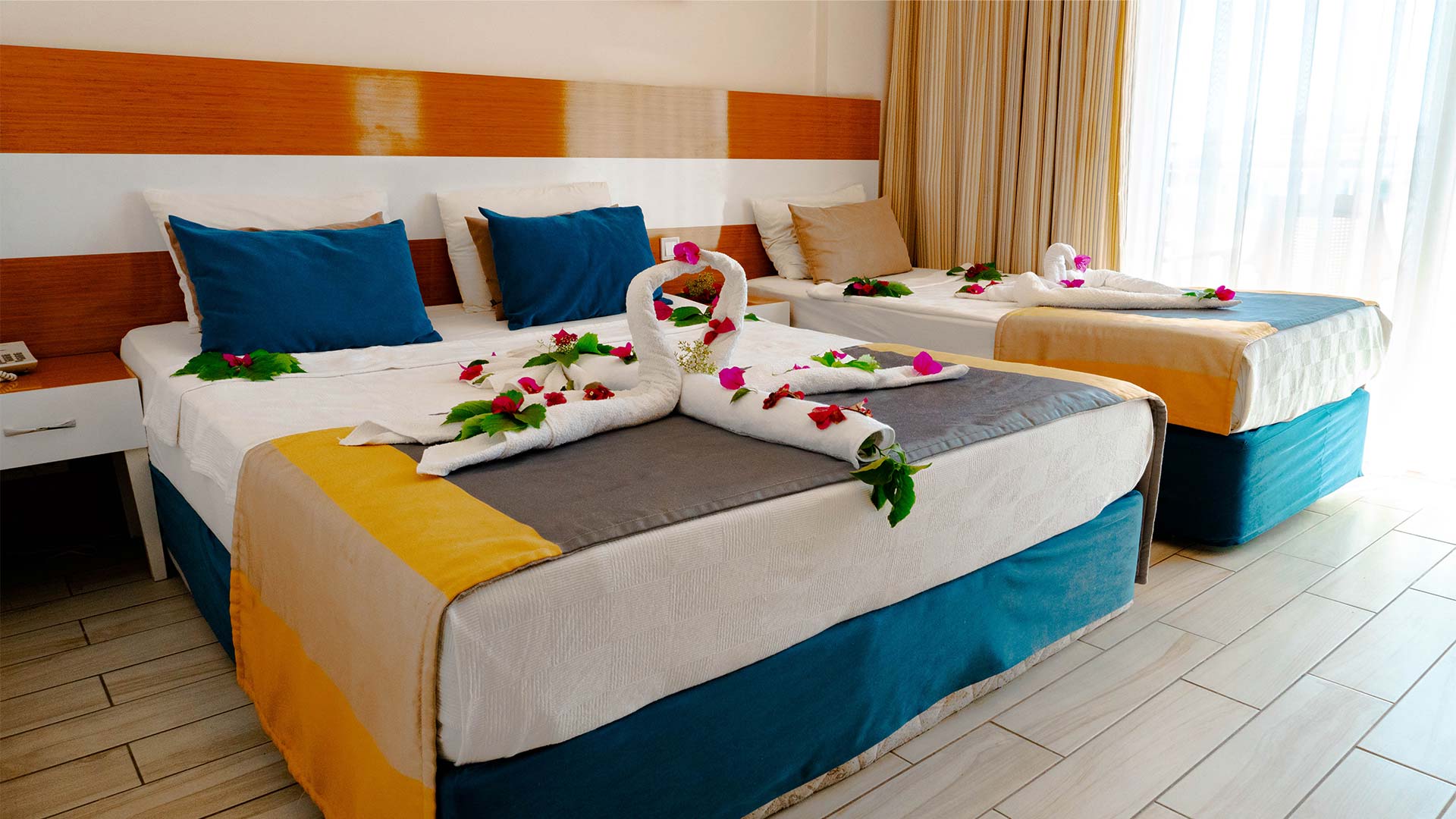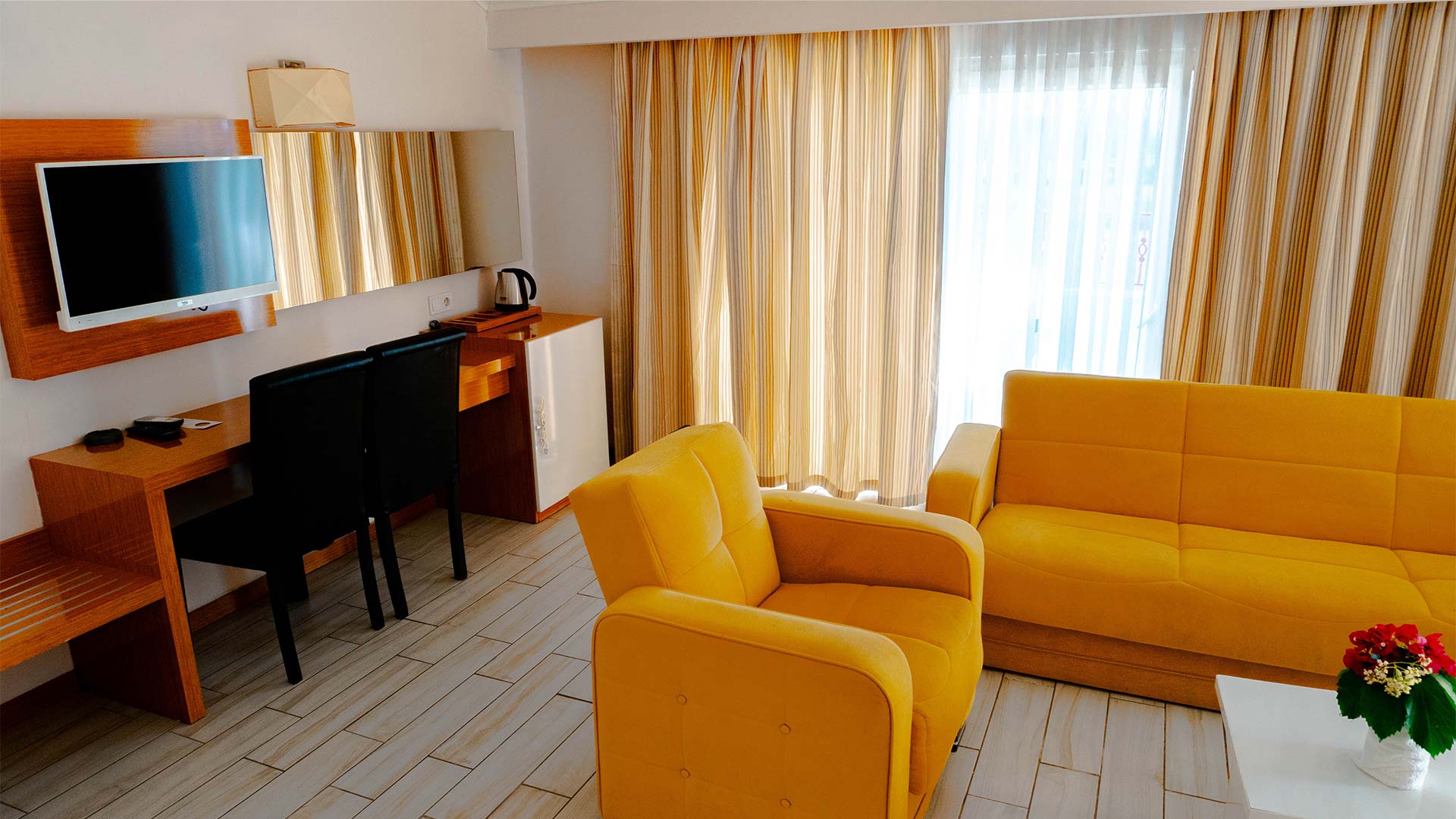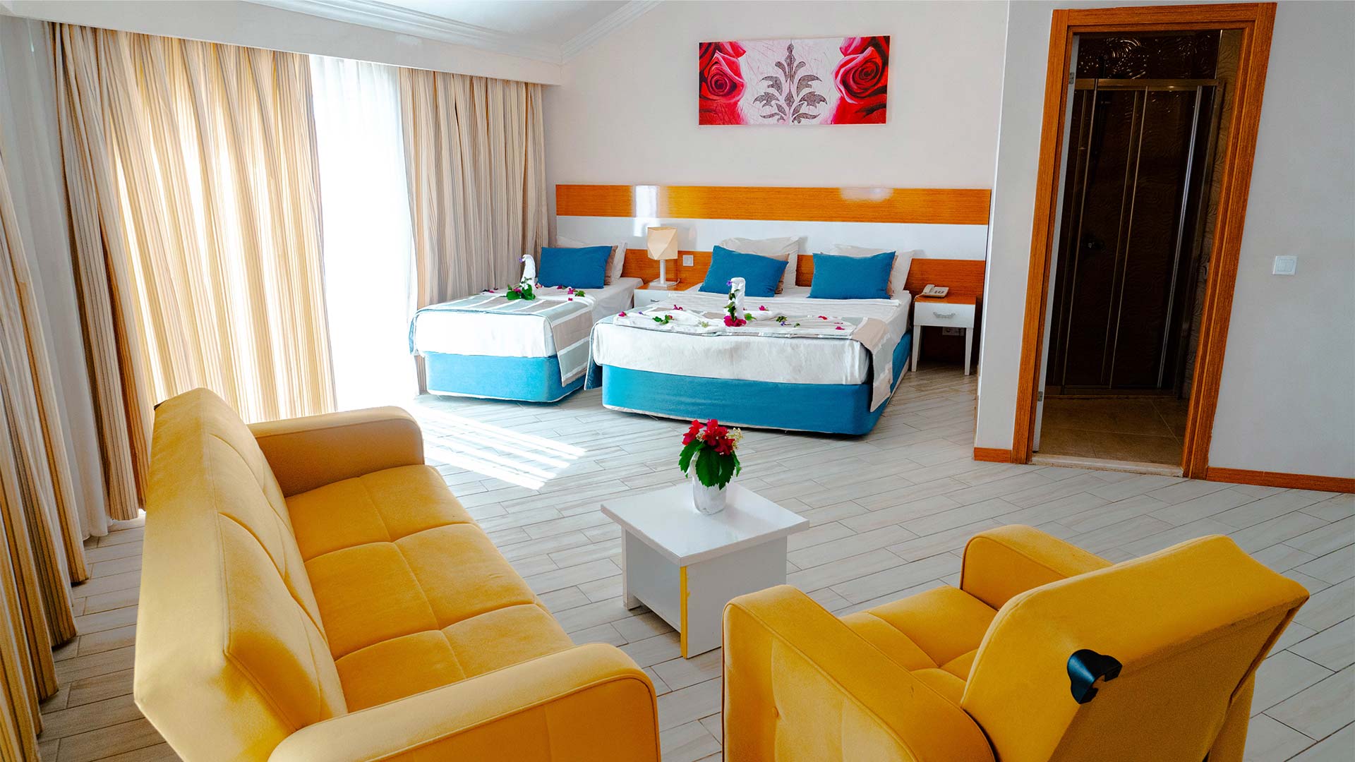 Tesis bünyemizde Standart, Large Family ve Family olmak üzere 143 adet oda bulunmakta olup, tüm odalarimiz da merkezi klima/split klima ile oda sicakliginizi ayarlayabilir TV, kablosuz internet (sadece lobide ücretsizdir), telefon ve kasa (ücretlidir) hizmetlerinden konaklamaniz boyunca faydalanabilirsiniz.
